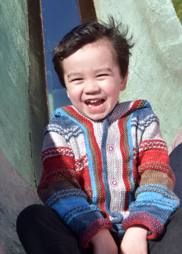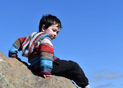It did give me time to finish some crafty projects that have been stalled for a while.  Master J has been looking forward to a new sweater for quite some time, and who could deny this face!?!