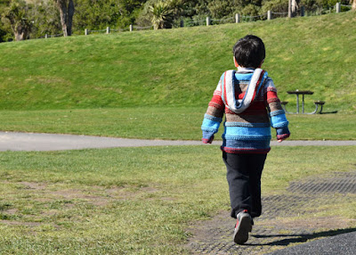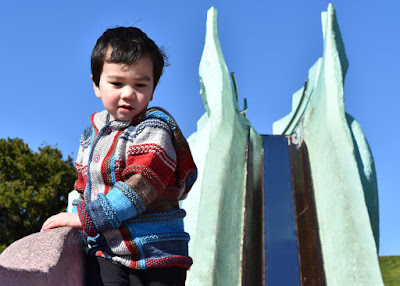 Master J couldn't wait to take it for a spin so we headed off to his favourite playground on a glorious cool clear early-Spring morning after the school drop off for his siblings.  He was delighted to have the playground to himself and took off at run.